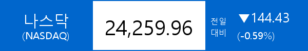 .나스닥 종합, 144.43포인트(-0.59%) 하락한 24,259.96