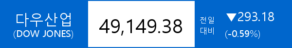 .다우존스, 293.18포인트(-0.59%) 하락한 49,149.38